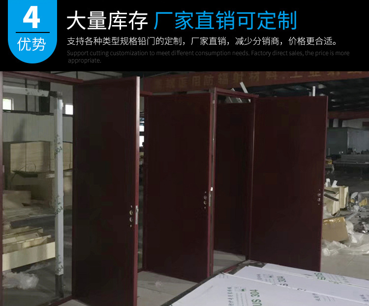 防輻射鉛門門體內部采用硬質聚氨酯整體高壓發(fā)泡工藝,高強度鋁合金框架,經(jīng)自動升降液壓設備大平臺壓制成型。專用設備門扇的良好平整度。表面可按用戶要求外飾大平面亞光不銹鋼板、噴塑鋼板等各種板材。