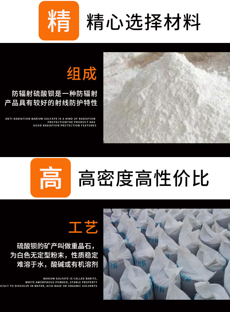 防輻射硫酸鋇砂是一種防輻射產(chǎn)品,防輻射硫酸鋇砂比重較大,具有較好的射線防護特性,為保證防護效果,必須嚴格按工藝要求進行操作.它的施工如下: